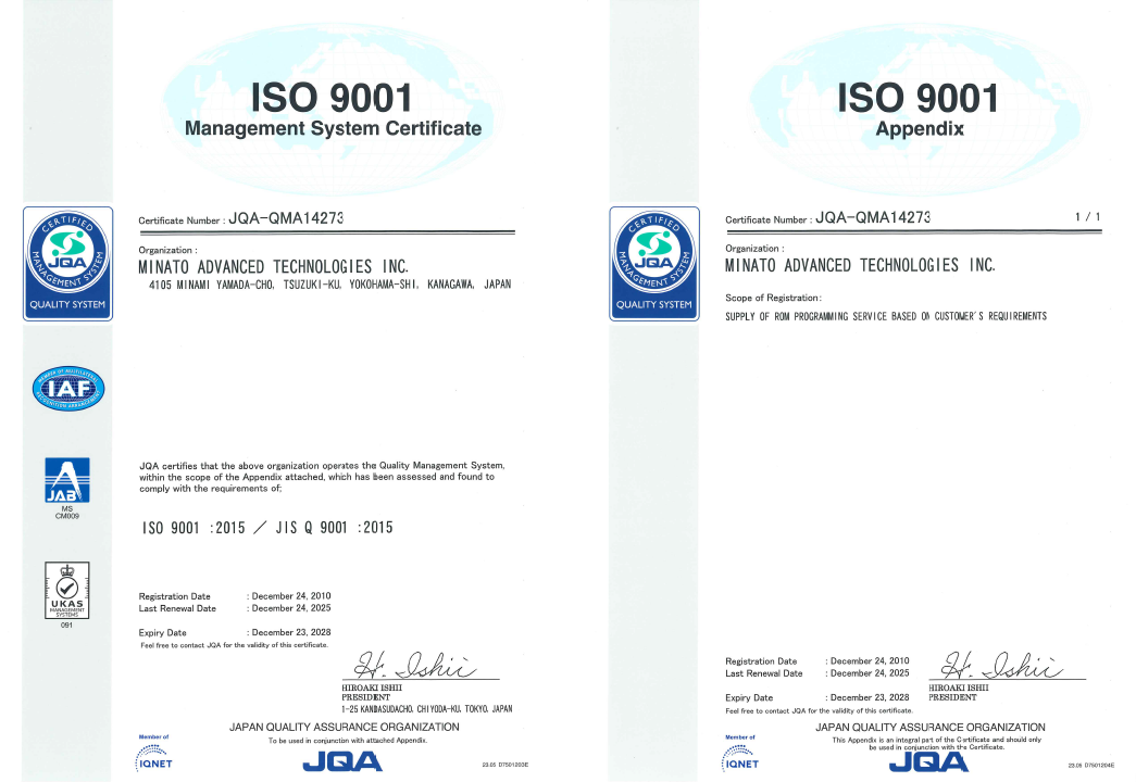 The ROM Writing Service Department (DS Division) is certified to ISO 9001:2015, and the registration was renewed on December 23, 2025.